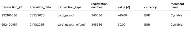 - card_payout_refund → Les remboursements marchands (retour en magasin d'un article par un bénéficiaire, par exemple).