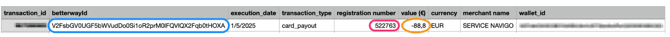 Cette même ligne contient le champ referenceId, qui correspond au Betterway_ID